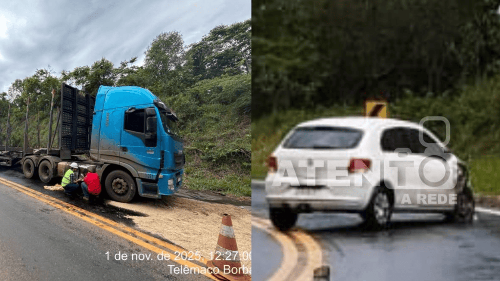 De acordo com a Polícia Rodoviária Estadual (PRE), a colisão foi do tipo abalroamento lateral. Os veículos envolvidos foram um VW/Gol City, com placas de Telêmaco Borba, conduzido por um homem de 26 anos, e um conjunto de carretas Iveco/Stralis, conduzido por um homem de 25 anos.