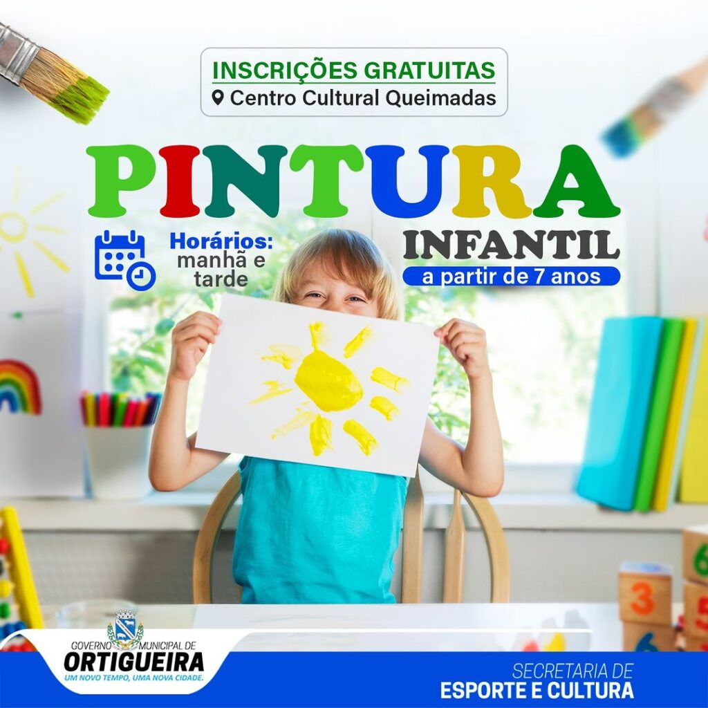 Atenção, pais e responsáveis! A Prefeitura de Ortigueira convida crianças a partir de 7 anos para as aulas de Pintura Infantil do Centro Cultural Queimadas.