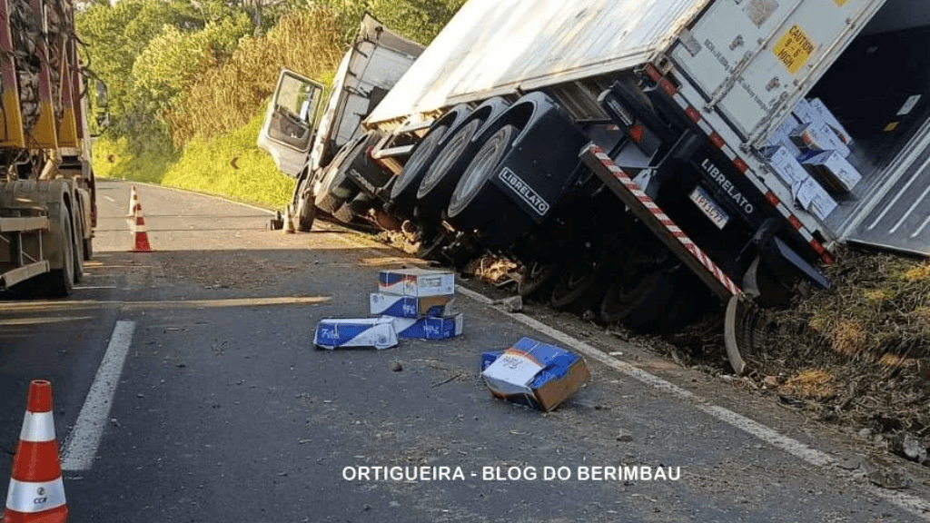 Um caminhão carregado com carne bovina congelada tombou na manhã desta segunda-feira (6) na rodovia BR-376, no município de Ortigueira. O veículo de carga pesada seguia viagem no sentido à capital Curitiba quando ocorreu o acidente na pista.