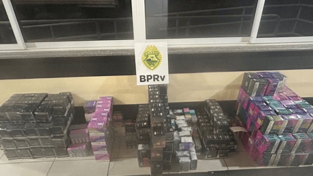 Durante a revista na cabine do veículo, os agentes encontraram 2.245 unidades de cigarros eletrônicos e quatro localizadores. A PRE estimou um prejuízo de cerca de R$ 250 mil para as operações de contrabando na região.