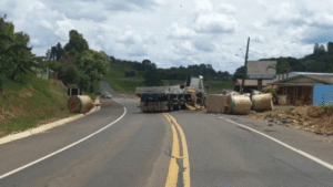 Acidente no km 315 da BR-376 envolve dois caminhões nesta segunda-feira. PRF atende a ocorrência em Ortigueira e confirma preliminarmente que não há feridos.