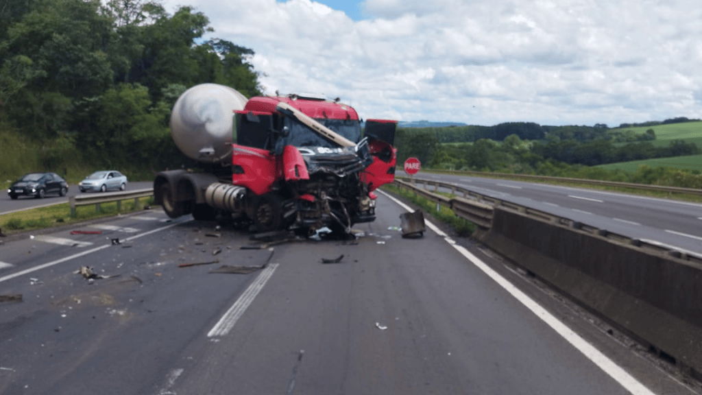 Uma colisão traseira envolvendo dois caminhões mobilizou a Polícia Rodoviária Federal (PRF) no quilômetro 389 da BR-376, em Imbaú. O acidente ocorreu na pista sentido norte e resultou em três vítimas com ferimentos leves. Devido à batida, as duas faixas de rolamento ficaram totalmente obstruídas, exigindo que o fluxo de veículos fosse desviado para a via lateral, onde o trânsito segue normal.