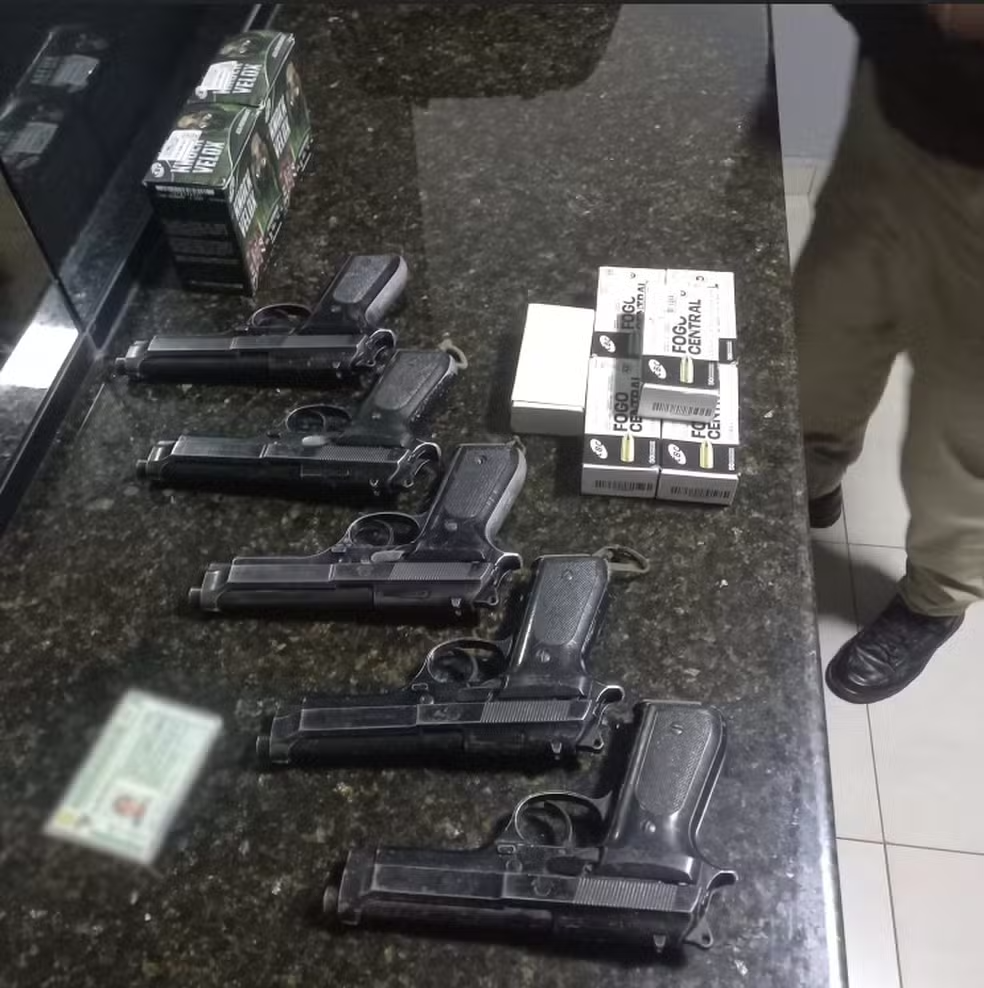 Além disso, a quinta arma foi localizada às margens da PR-484, em Quedas do Iguaçu, após informações fornecidas pelo próprio detido.