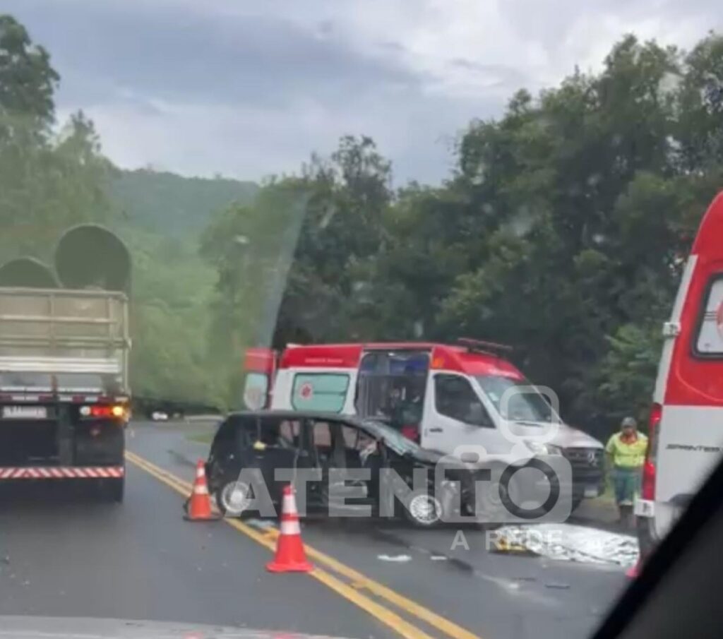 Na tarde deste sábado (15), um grave acidente de trânsito no km 374 da BR-376, em Ortigueira, Paraná, resultou na morte de uma mulher identificada como Cris Dias, moradora de Arapongas. A colisão envolveu dois automóveis e um caminhão.