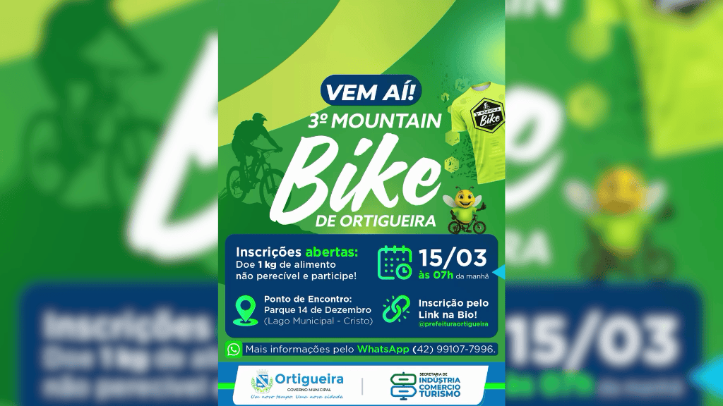 A Prefeitura de Ortigueira confirmou a realização da terceira edição do Mountain Bike no município. O evento esportivo promete movimentar a cidade no dia 15 de março. A concentração dos atletas está marcada para as 07h da manhã, no Parque 14 de Dezembro, região do Lago Municipal.