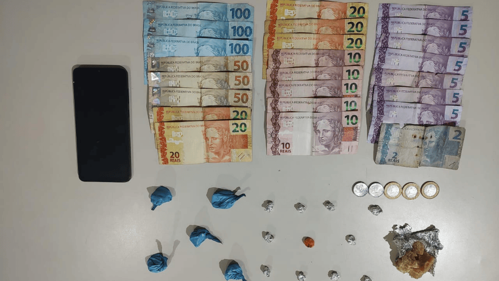 Durante as buscas na residência, a equipe policial encontrou porções de crack e cocaína prontas para a comercialização, além de dinheiro e um celular. Parte da droga foi encontrada debaixo do travesseiro de uma criança, o que exigiu a intervenção do Conselho Tutelar.