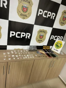 Após uma operação conjunta da Polícia Militar e Polícia Civil de Ortigueira, foram apreendidas diversas substâncias, incluindo crack e cocaína, além de dinheiro, celulares e
