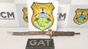 Homem de 39 anos é preso em Ponta Grossa por atacar esposa com espada artesanal. Vítima foi levada à UPA com ferimento na cabeça. Suspeito