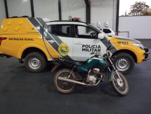 A Patrulha Rural Alfa do 26º Batalhão apreendeu uma motocicleta com chassi adulterado e sem placa em Ortigueira. O condutor, sem CNH, foi levado à