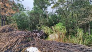 Acidente grave na BR-376: caminhão tomba em barranco entre Mauá da Serra e Ortigueira, deixando vítima ferida. Corpo de Bombeiros e SAMU prestam socorro imediato.