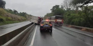 Um caminhão virou na manhã desta segunda-feira (27), entre Tibagi e Ponta Grossa, na BR-376. Como resultado do acidente, parte da pista no sentido sul