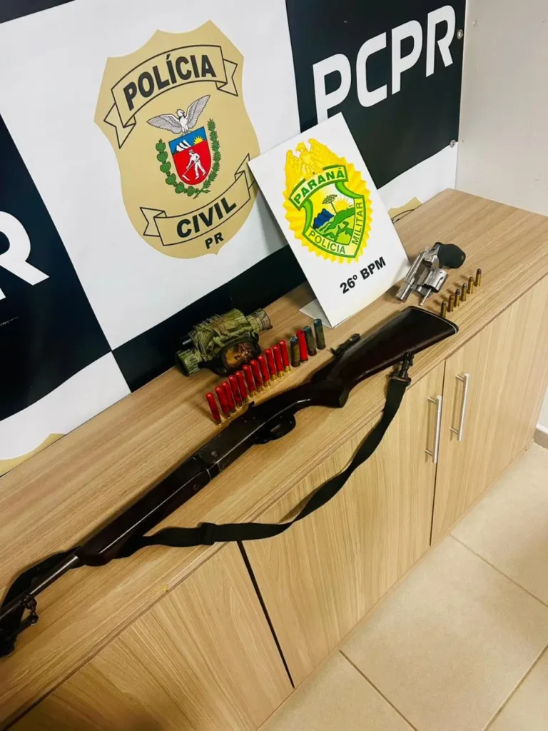 Na manhã de 23 de agosto, a Polícia Militar e a Polícia Civil do Paraná realizaram uma operação conjunta no município de Ortigueira, resultando na apreensão de armas de fogo. A ação foi coordenada pela Delegacia de Ortigueira e pelo 26º Batalhão da PM.