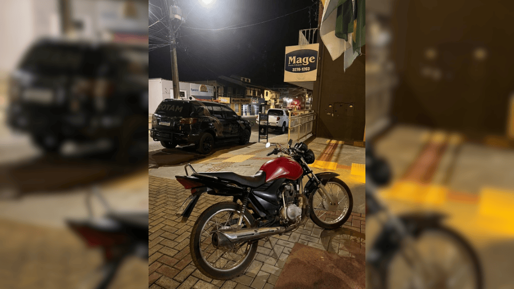 As equipes intensificaram o patrulhamento e localizaram a motocicleta estacionada em frente a uma residência na Avenida Políbio Meira Cotrin. Um homem se apresentou no local como proprietário e relatou ter adquirido o veículo em outra cidade da região.