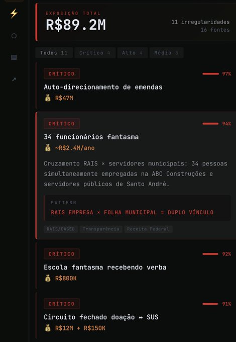 Uma nova ferramenta desenvolvida pelo brasileiro Bruno César está causando pânico e forte reação no meio político. O sistema inovador utiliza inteligência artificial para examinar grandes bases de dados públicas e já encontrou R$ 89,2 milhões em possíveis fraudes. O objetivo central da tecnologia é identificar indícios de corrupção ao estabelecer conexões precisas entre agentes públicos, empresas, familiares e contratos governamentais.