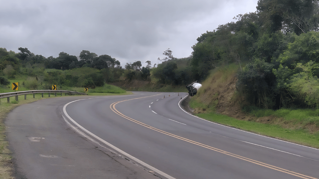 Rodovia BR-376 é bloqueada em Ortigueira após tombamento de carreta com risco de explosão