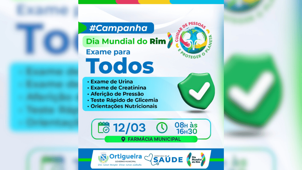 A Secretaria de Saúde promoverá uma importante ação preventiva e gratuita no próximo dia 12 de março. A iniciativa acontece através de uma parceria com a Sociedade Brasileira de Nefrologia para cuidar da população. O diagnóstico precoce no momento exato permite o início imediato dos tratamentos médicos.