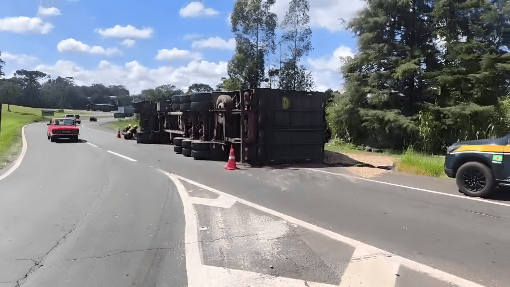 A Polícia Rodoviária Federal (PRF) atendeu a uma ocorrência de tombamento no quilômetro 183 da rodovia BR-373, exatamente na alça de retorno do trevo que faz a intersecção com a BR-376, onde, apesar do impacto e dos danos materiais ao veículo, o acidente não deixou vítimas.
