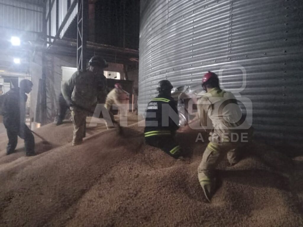 O trabalhador que morreu em silo foi engolfado por uma grande quantidade de grãos enquanto se encontrava no fundo do silo, que estava com cerca de metade de sua capacidade total, aproximadamente 250 toneladas de grãos. Inicialmente, o primeiro bombeiro desceu ao local de forma ancorada, enquanto o restante da equipe iniciou a abertura de cinco pontos laterais no silo para escoar os grãos e tentar viabilizar o resgate.
